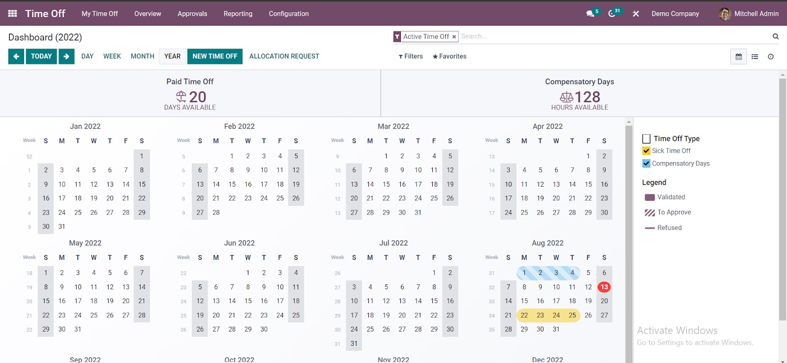 The Odoo HRMS system includes a feature that lets you track vacation days and sick leave or helps in employee health management. This can be useful if you need to monitor employee attendance. An employee can be alerted when their leave is about to expire or their vacation days are approaching. This way, you can make sure that employees are taking the proper amount of time off and that they are not exceeding their limits. Additionally, this information can be helpful in planning future vacations and making sure that there are sufficient staff members available.